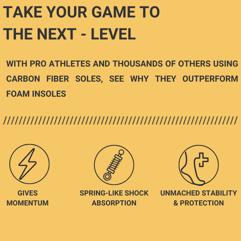 Every time you run or jump, your foot bends and generates energy with each step. This energy is essential for forward and upward movement. Traditional foam insoles absorb most of this energy and disperse it into the ground, which limits your performance potential.